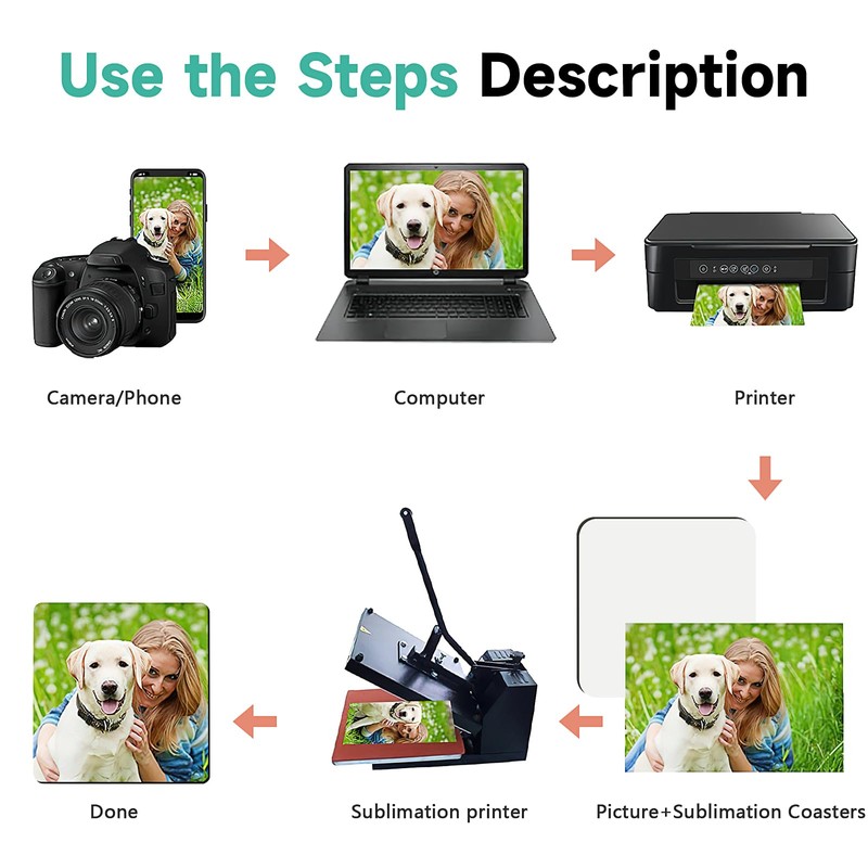 - How to Use: The coaster sublimation blanks are easy to customize, simply peel off the protective film, place your image with heat transfer tape, and apply heat at 355-375°F (180-190°C) for 60-70 seconds. (Note: Due to machine and environmental reasons, the heating temperature and time need to be adjusted by yourself)