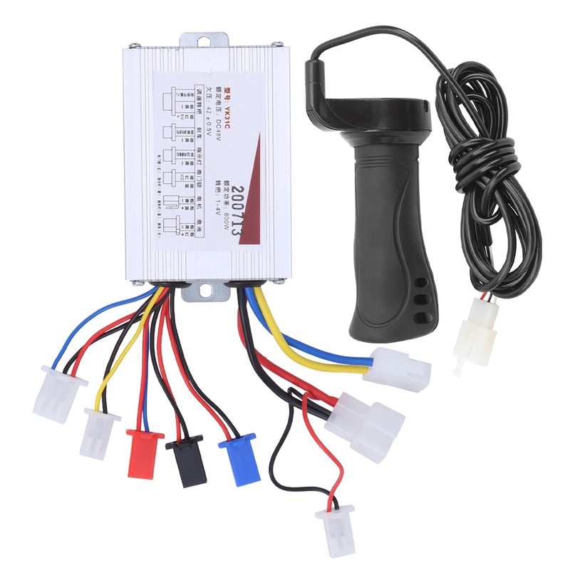 1、Provides stable and responsive speed control, operating normally on the right handlebar. 2、The controller housing is made of aluminum alloy, which can protect the internal circuit, and has good heat dissipation, avoiding thermal overload. 3、Suitable for electric bicycle, electric tricycle, electric scooter. 4、With undervoltage protection, overcurrent protection, stall protection and other protection functions, to make sure the use of electric bicycles and safety. 5、Easy to install, it is necessary repair parts for all electric bicycle.
