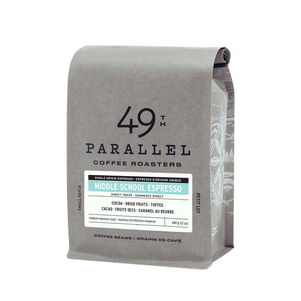 49th Parallel Coffee Roasters – Middle School Espresso Whole Beans – Gourmet Coffee - Medium Roast Coffee, 12oz