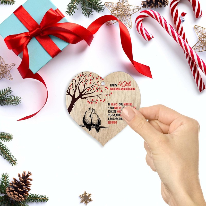 - HANDMADE WOODEN ANNIVERSARY GIFTS: This exceptional quality I love you gifts for wife or husband heart shaped wedding wooden plaque shows the design: Happy 49th wedding anniversary 49 years 588 months 2548 weeks 17885 days 429240 hours 25754400 minutes 1545264000 seconds If you are looking for the perfect I love you gift then then this hanging wooden decoration is bound to make them smile. Soulmate gifts for her and friends cake decorations bar sign.