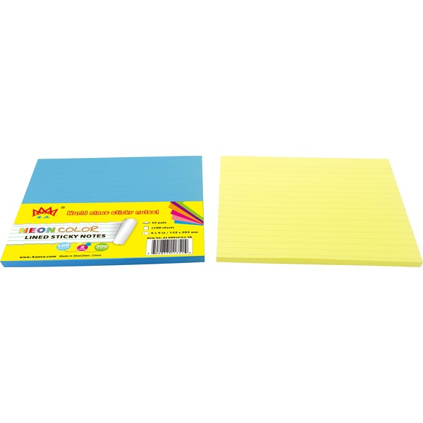4A Sticky Notes,6 x 8 Inches,Large Size,Neon Yellow&Blue,Lined,Self-Stick Notes,100 Sheets/Pad,2 Pads/Pack,4A 608x2-N-L-YB