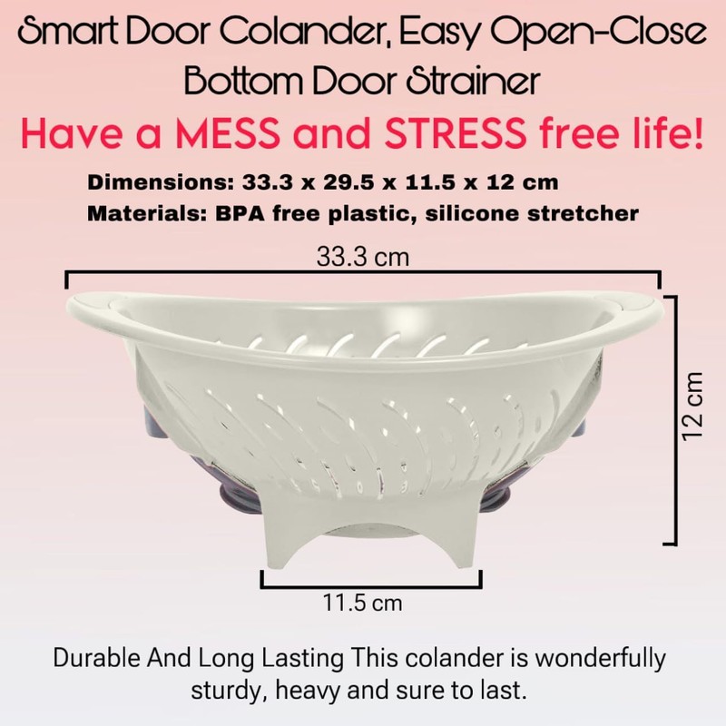 - 1. Innovative Open-Close Bottom Door: Our salad colander features a unique open-close bottom door design, allowing you to easily drain and release water without the need for additional bowls or plates. Simply twist the knob to open the door and let the water flow out, making straining your salad a breeze.