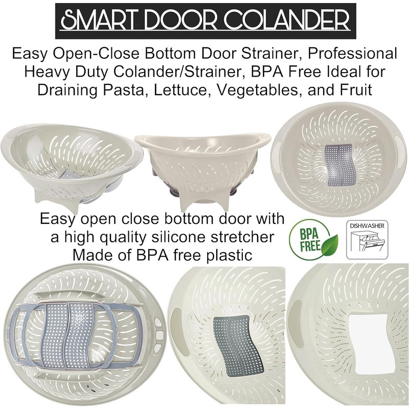 - 1. Innovative Open-Close Bottom Door: Our salad colander features a unique open-close bottom door design, allowing you to easily drain and release water without the need for additional bowls or plates. Simply twist the knob to open the door and let the water flow out, making straining your salad a breeze.