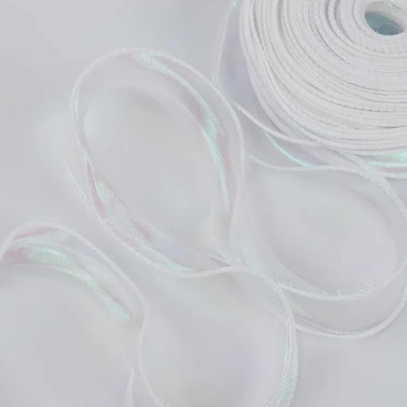 4cm*40 Yards Iridescent Organza Chiffon Ribbon White Sheer Organza Bouquet Ribbon for Gift Wrapping