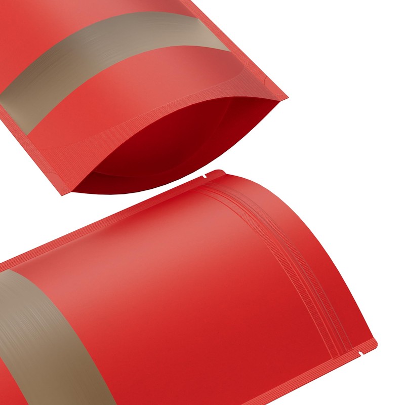 4CP 100 Pcs Kraft Resealable bags, Zipper Sealable Food Storage Bags for Packaging Products, Reusable Stand Up Kraft Paper Bags with Matte Window (Red, 5.9x7.9 inch)