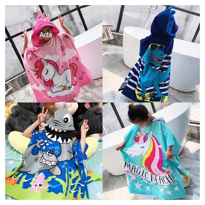 [해외]초등비치타올 활성프린트 후드 목욕 가운 망토 흡수 속건 목욕 타월 착용 4ea