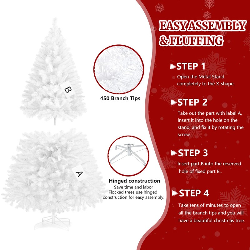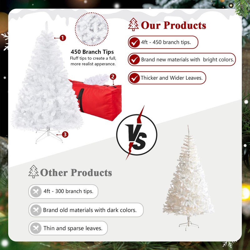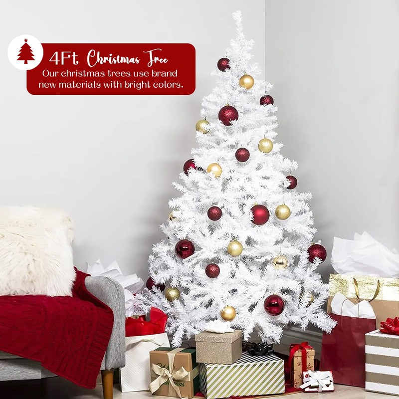 4ft Artificial Christmas Tree, Arbol de Navidad with 450 Branch Tips, Premium North Valley Spruce with Foldable Base Stand, Xmas Tree for Home, Office,Party Decoration-White