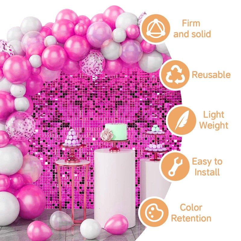 - COLOR RETENTION & REUSABLE :Our shimmer wall backdrops are constructed from top-quality, resilient polymeric material with a non-toxic coating, ensuring their exceptional durability. With a highly reflective surface, they create a captivating interplay of light and shadow when illuminated, captivating viewers' attention. They can be used repeatedly for various occasions without fading or peeling. Maintenance is effortless, requiring just a damp cloth or wet wipes to preserve the shimmer panels' stunning appearance consistently