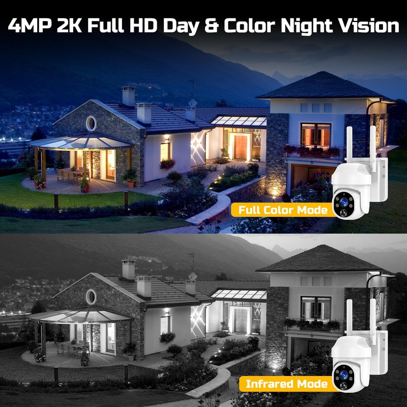 - 【Full Color Night Vision & Intelligent Detection Alarm】Our 4G camera provides full color surveillance both day and night. At night, it can be adjusted to full color/visual/infrared/auto mode to restore the most accurate color. When suspicious persons approach, the 4G camera can activate the alarm and flashing strobe light to repel strangers, safeguarding your family's safety at all times.