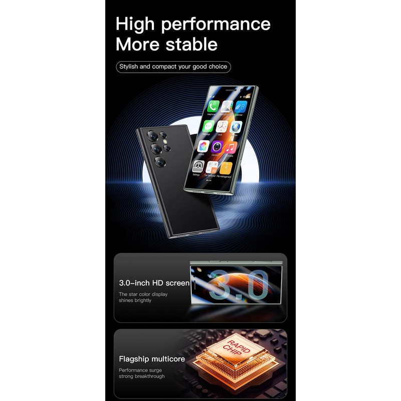 - Mini unlocked 3.0'' screen touch smartphone equipped with quad-core android system and 2GB RAM 16GB ROM.