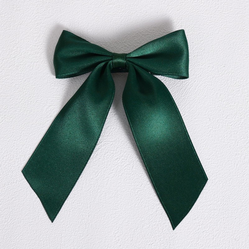 4in Christmas Dark Green Hair Bows Alligator Clips for Teen Toddler Girls, 2pc Solid Silky Satin Polyester Ribbon Ponytail Holder Barrettes Party Dress Accessories Kids Xmas Gift