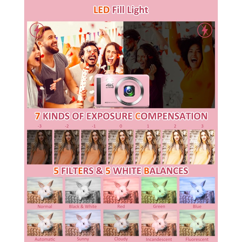 - 44MP & 4K UHD Digita Camera:Vlogging cameras, with their cutting-edge CMOS metering system, easily capture Ultra HD 44 megapixel images and smooth 4K video. The system automatically reveals natural vibrant colours and vivid details without the need for manual settings. Easy to operate, it requires no specialised skills and can be easily handled by everyone. Its excellent performance and ease of use make it easy for everyone to enjoy the fun of creation and become a leader in the field of video production!