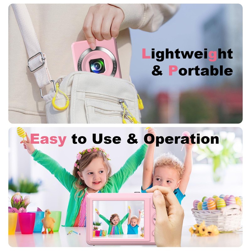 - Easy to Operate & Perfect Gift:This mini camera is small, compact and easy to carry around for young and old alike. Its well-considered design, intuitive buttons and simple menu make photography easy and simple. Whether it's capturing the best moments in life or recording important moments, it's easy to do. This camera is a great gift for friends and family, whether they are young boys and girls or parents and elders, they can feel the convenience and fun it brings.