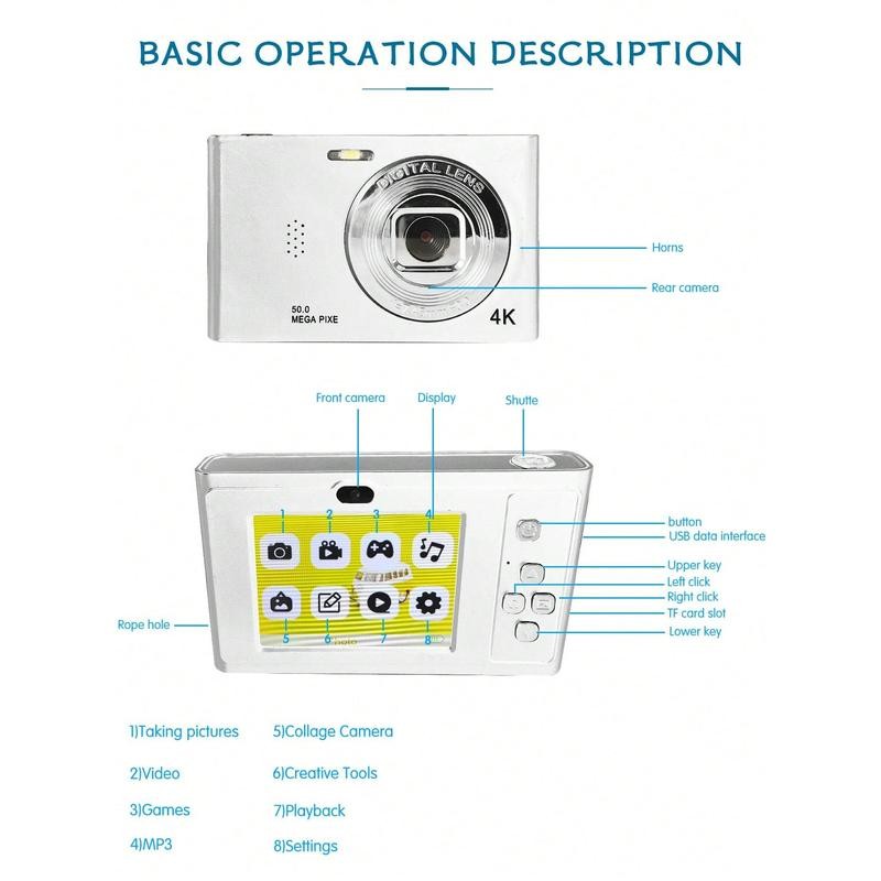 4K Digital Camera Entry-Level Retro Style Mini CCD Camera, High Definition, High Pixel, Portable, Ideal For Students And Travelers - Colour: Black