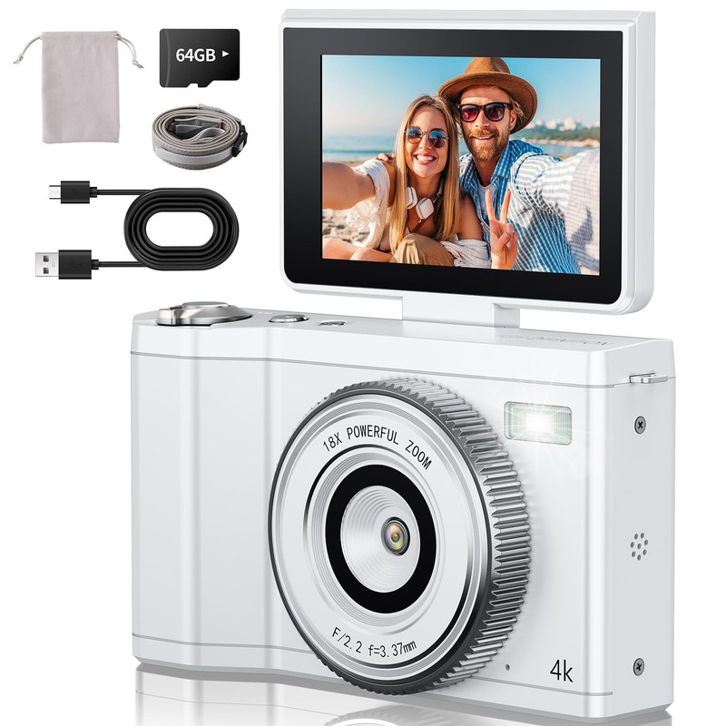 - 【digital camera with 180° 4k hd flip screen】our 4k camera for photography offers a 3.0-inch ips 180° flip screen,ideal for selfie enthusiasts and vlogging creation.designed for travel and everyday use,we have prepared a beautiful pu material strap for you, making the camera more portable and convenient for you to take photos.