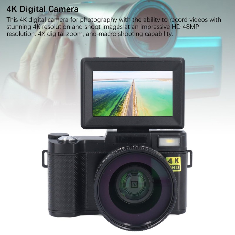 - 4K Digital Camera: This 4K digital camera for photography with the ability to record videos with stunning 4K resolution and shoot images at an impressive HD 48MP resolution. 4X digital zoom, and macro shooting capability.