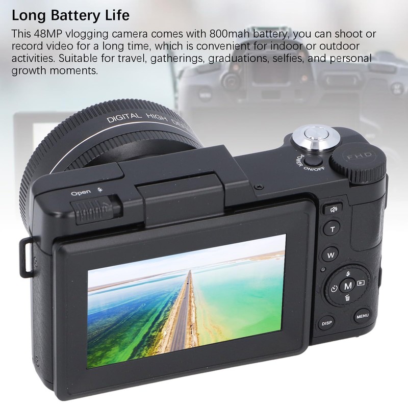 - Long Battery Life: This 48MP vlogging camera comes with 800mah battery, you can shoot or record video for a long time, which is convenient for indoor or outdoor activities. Suitable for travel, gatherings, graduations, selfies, and personal growth moments.