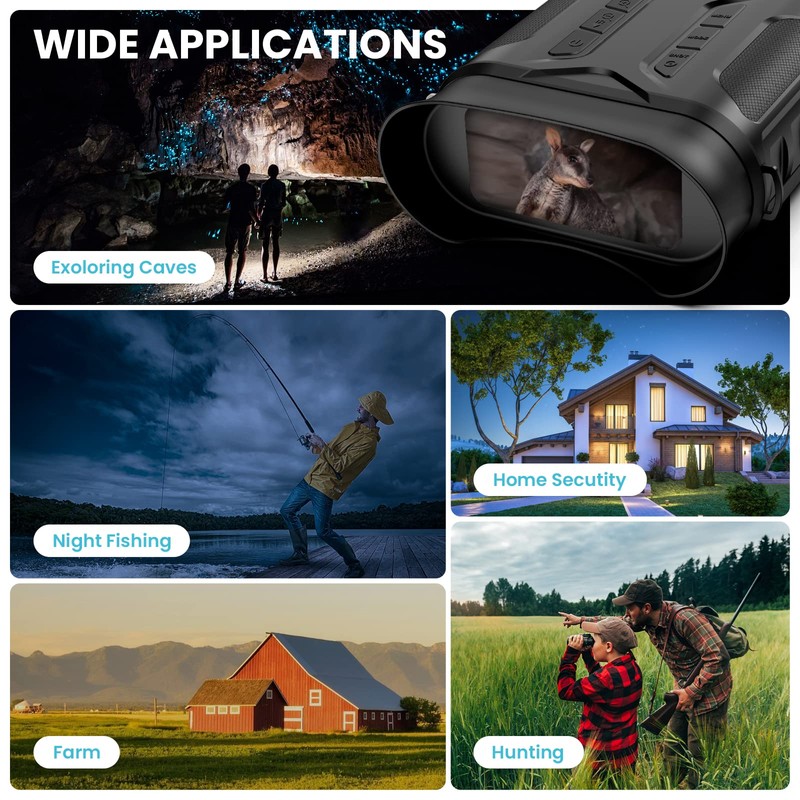 - 【Roam The Dark】Enjoy the ultimate 4K experience with our most powerful and innovative night vision binoculars, which features 3” LCD Screen, 5x Digital Zoom, 7 IR Infrared Levels, 15 levels of Brightness Screen and IP54 Waterproof Design, support 36MP photos and 4K video recording, making it perfect for farm monitoring, hunting, camping, hiking, security, surveillance and wildlife observation.