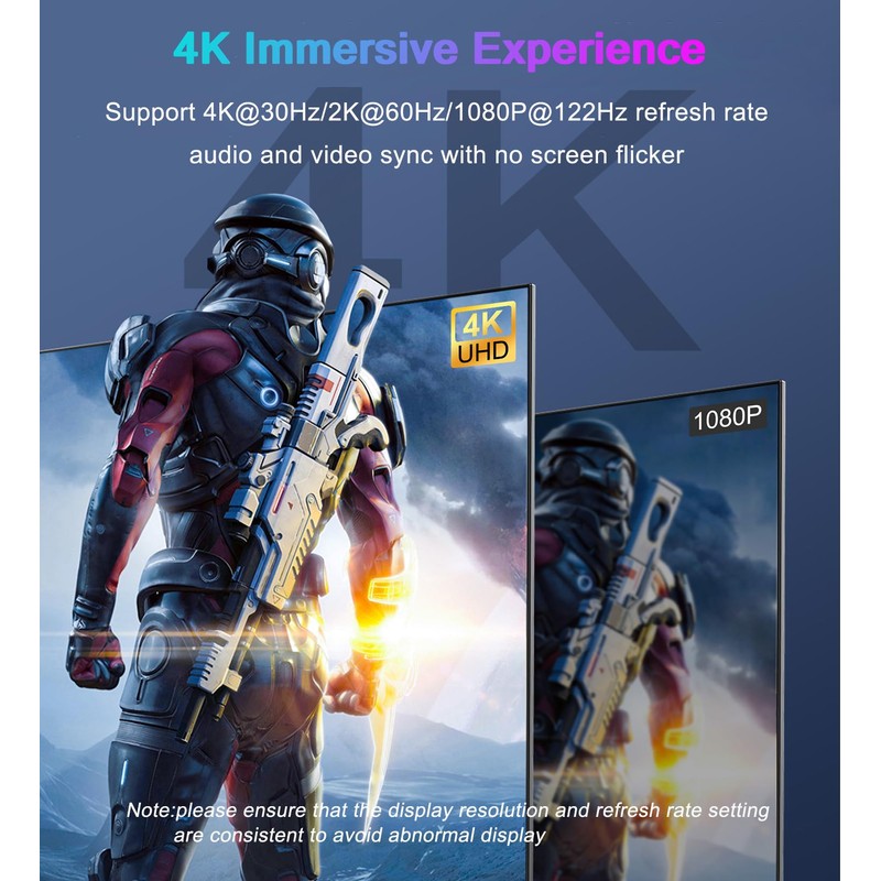 - 【Audio & Video Sync Transmission】:This displayport to hdmi cable delivers high-definition audio and video from your computer source to HDMI screen, supporting extended or mirrored modes. Handles resolutions up to 4K@30Hz, 2K@60Hz, and 1080P@120Hz, with flawless audio for 7.1, 5.1, or 2 channels