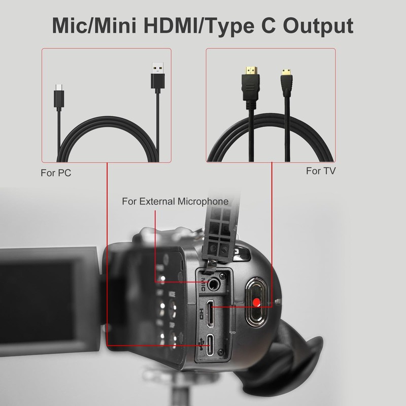 - 🎥 Come with 2 High-Performance Batteries: This digital camera features two 1250mAh lithium-ion batteries that can record up to 1.5 hours of 4k video on a full charge, and this video camera also supports connecting to an external power bank for extended recording