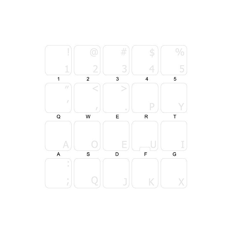 - The Dvorak layout is spread onto transparent - matt sticker, with white color.