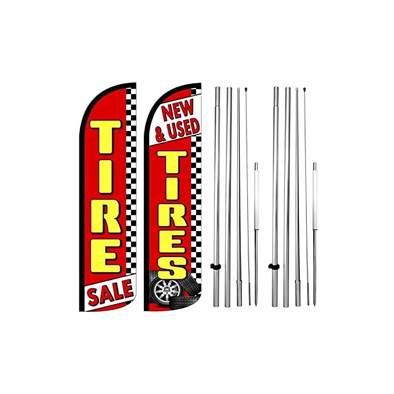 4Less 2 Pack - TIRE Sale, New Used Tires Swooper Flag Windless Feather Banner Sign 15 ft Tall Pole w/Ground Spike Kits rz-h