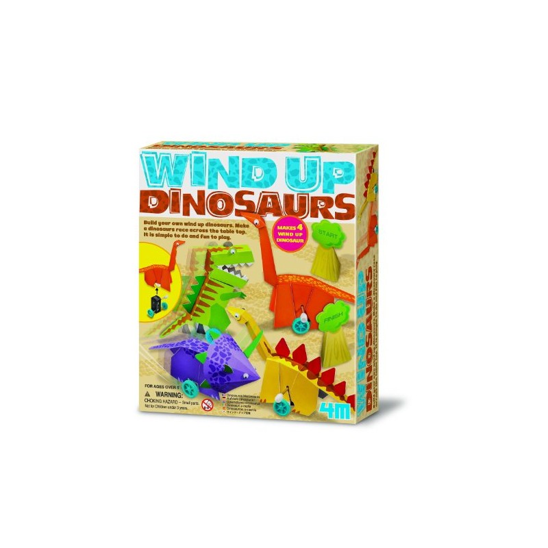 - Included with the set are cardboard stock for 4 vibrantly colored dinosaurs and the wind-up mechanisms to make them go.