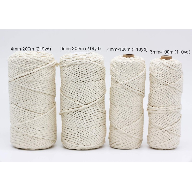 4mm 220Y Macrame Cord Rope -1/6inch Single Stand White Macrame Cotton String for Handemade Wall Hanging Weaving Basketry Crochet and Tapestry (4mm-200m (220yd))