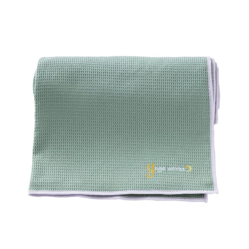 - Waffle weave yoga rug made of microfiber material with excellent water absorption and quick drying, antibacterial and odor resistant treatment. Simply place it on top of your yoga mat, the waffle textured surface absorbs sweat quickly. The silicone backing provides extra grip to keep it in place and comfortable. Widely used for yoga, hot yoga, pilates, etc