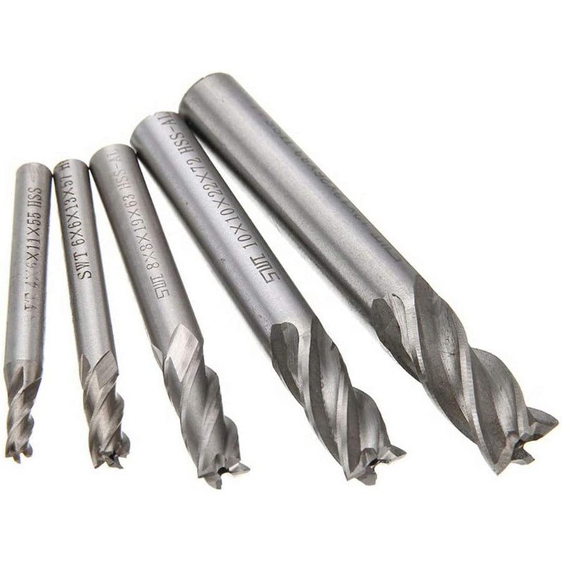 End Mill Bits Straight Shank End Milling Cutter 4 Flute End Mills Drill Bit Metric HSS CNC Lathe Drill End Mills Tool for Milling Metal
