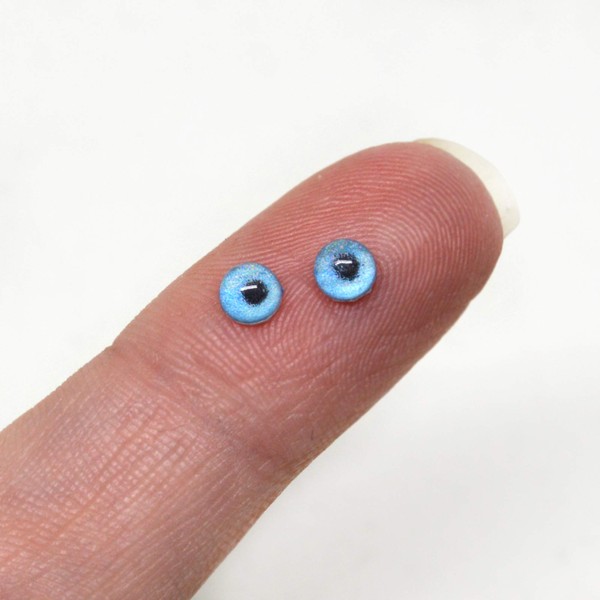 4mm Super Tiny Baby Blue Small Iris Glass Eyes Pair of Small Flatback Cabochons for Toy Sculpture Polymer Clay Art Doll or Jewelry Making (4mm)