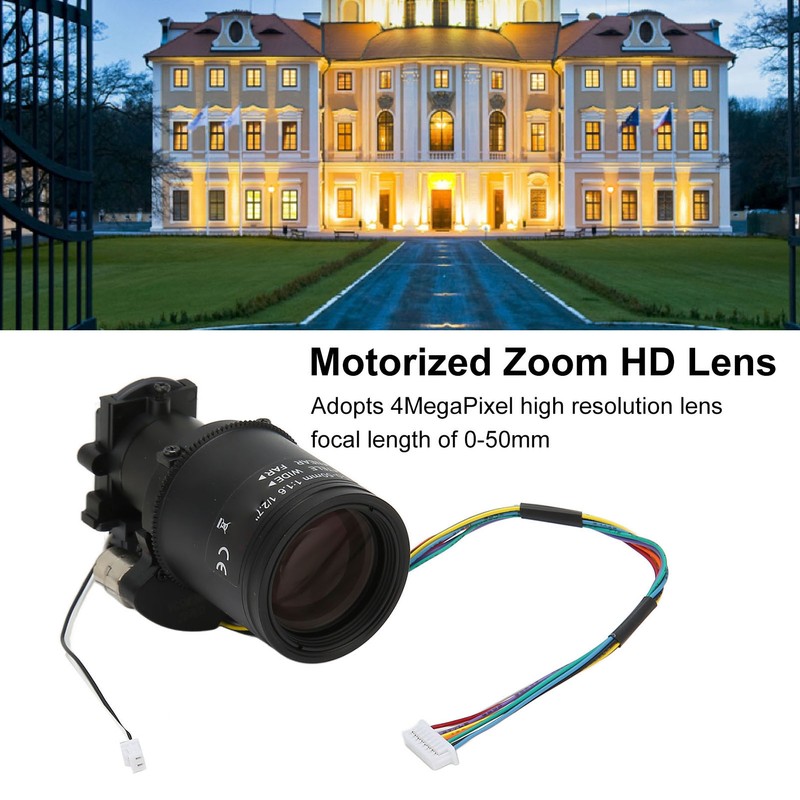1、Motorized Zoom: The lens is electric have two high precision motors, including electric zoom and autofocus. And you should be used with the drive PCB. 2、High Definition: 4 megapixel resolution lens has 0‑50mm, 1/2.7 inch focal length, which can see the thing more clearly. 3、IR Correction: The lens has an IR CUT function, which corrects the problem of color deviation during the day and improves the brightness at night. 4、Solid Housing: The lens is made of premium aluminum alloy housing, which can be used in extreme environments, and better protect the lens. 5、Easy to Use: The action camera lens are very easy and convenient for you to use, which requires no complicated or difficult operation.