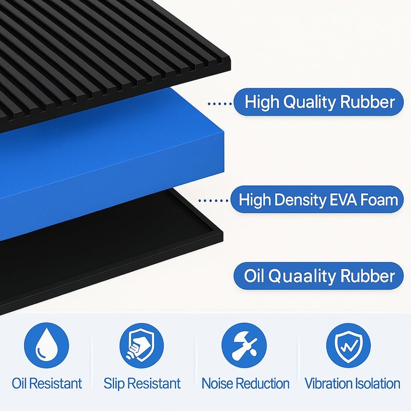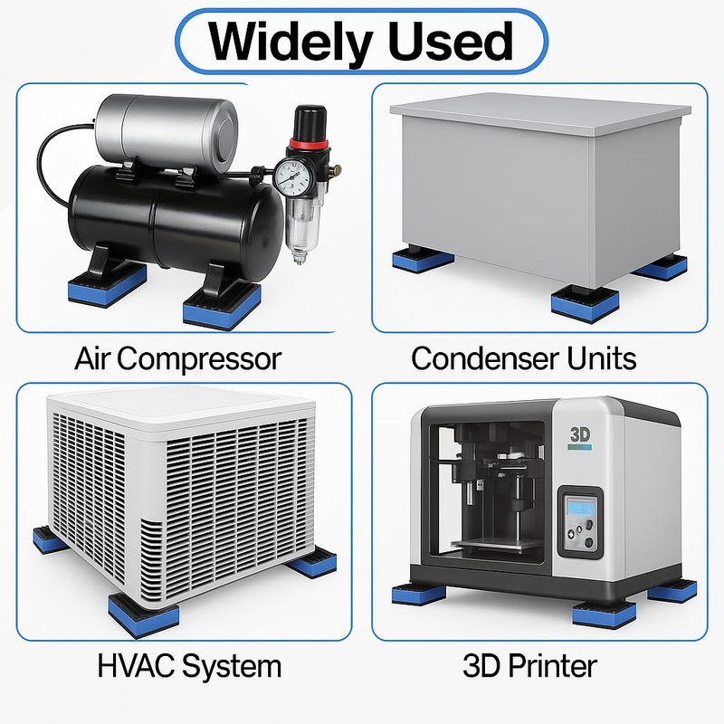 - 【EVA Sandwich Design】Anti vibration pads are made of high strength rubber with a blue EVA layer. EVA materials have excellent sound and vibration damping properties. The combination of EVA and rubber provides both durability and better shock absorption than ordinary rubber pads.
