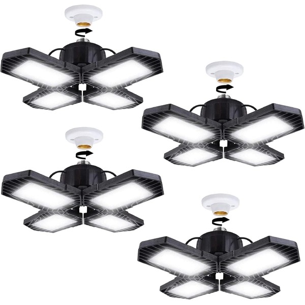 4Pack LED Garage Lights, 100W Deformable LED Lighting 10000LM E26 Daylight 6000K Super Bright Adjustable Lights for Warehouse