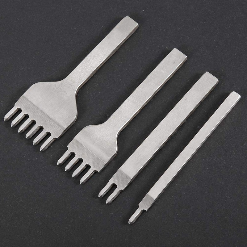 4Pcs 1/2/4/6 Prong Leather Craft Tool Hole Punches Lacing Stitching Chisel Leather Craft Steel Row Hardware Accessories(6mm)