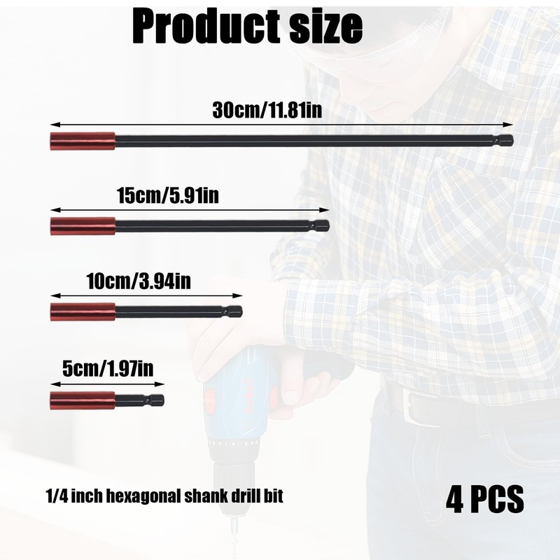 - 【Drill Bit Holder For Impact Driver 】: This strong magnetic drill bit extension holder set includes four sizes: 50mm, 100mm, 150mm and 300mm, designed for hard-to-reach corners and tight spaces.