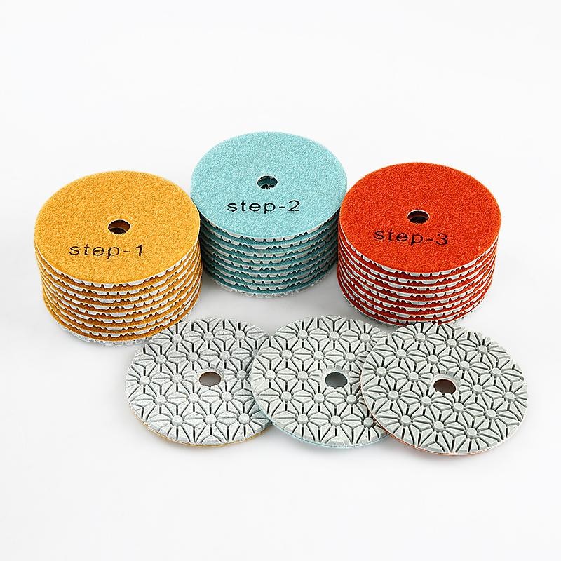 4PCS 100mm (4") Diamond Polishing Pads - Wet Use for Marble, Quartz & Granite - 3-Step Grinding/Polishing Kit for Angle Grinders