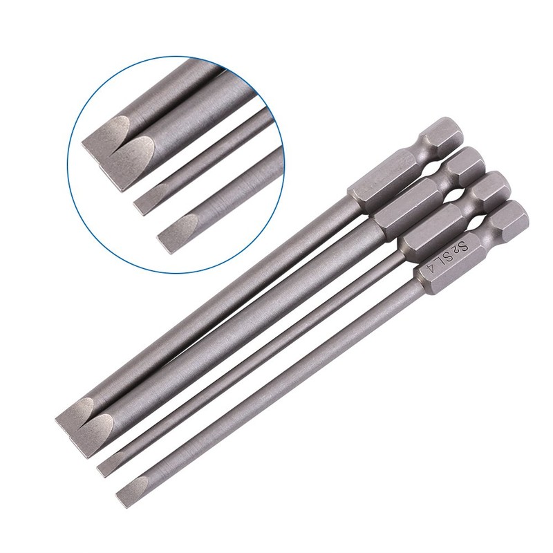 - S2 Alloy Steel-- The Slotted Screwdriver Bits are made of alloy steel which is anti-impact and tough, great wear resistant