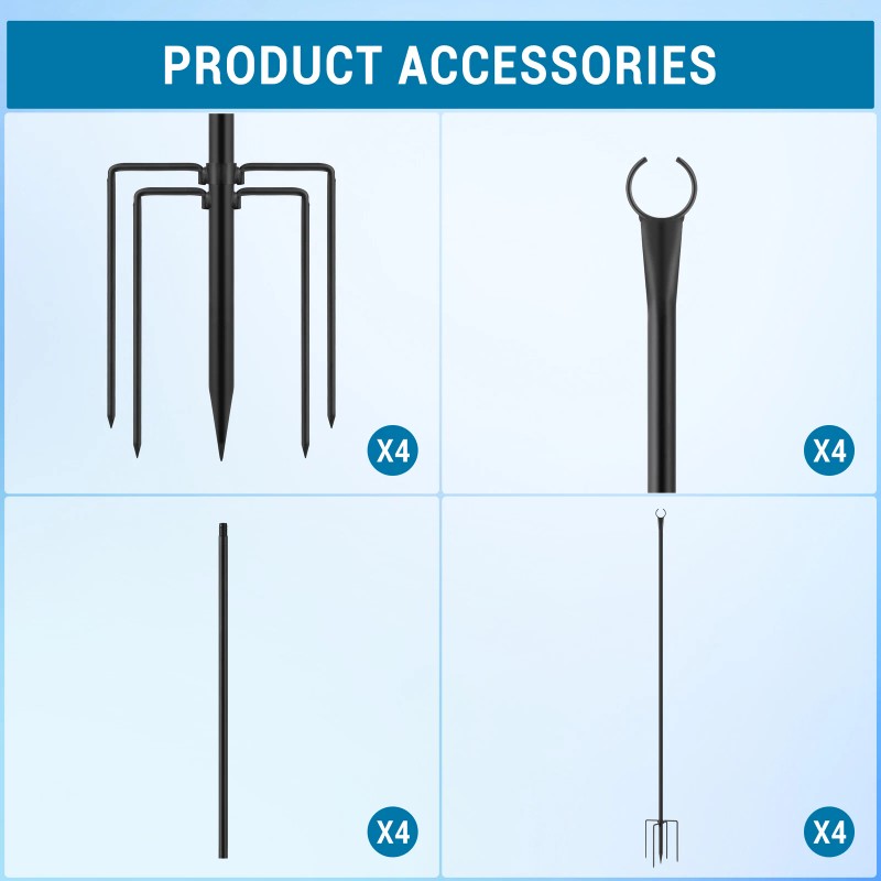• UNSHAKABLE STABILITY: The 5-prong base of the metal light poles for weddings can be firmly secured to the lawn or soil, making installation easy and keeping it firmly in place. The deeper insertion provided by the 5-prong base offers enhanced stability, preventing bending, breakage, and swaying
