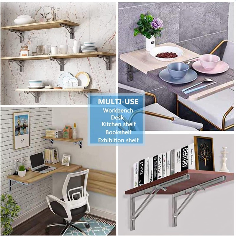 • 🏋️NO PAINT & MORE DURABLE - Our folding shelf brackets heavy duty are constructed of premium grade Cold Rolled Steel. Surface brushed treatment, build to resist daily scratches, corrosion and tarnishing. Great for chic kitchens with open shelving, displaying a library of books in study or saving extra storage in a powder room.