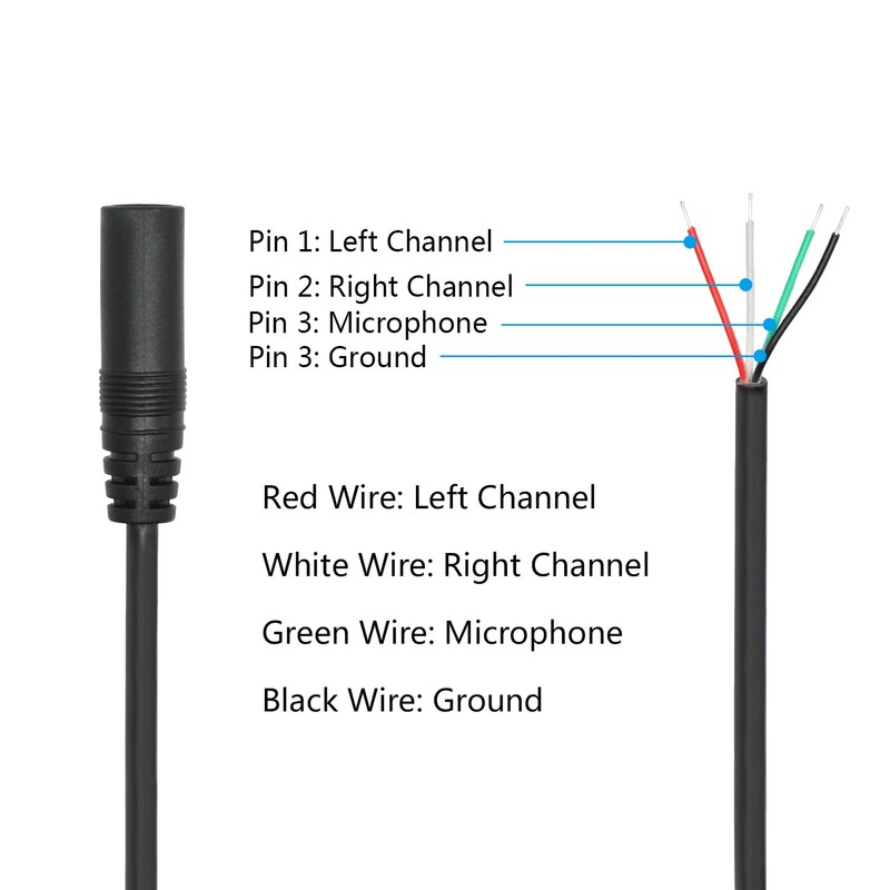 - 【Wiring Diagram】PIN 1 - Red Wire( Left Channel), PIN 2 - White Wire (Right Channel), PIN 3 - Green Wire (Microphone), PIN 4 - Black Wire (Ground).