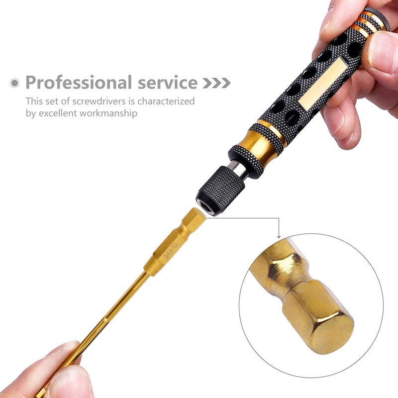 1、Good Features: Screwdrivers are ultra hard, anti twist, precise machining, rust resistant, and resistant to peeling and breakage. 2、Ultra Ergonomic: The screwdriver handle with anti skid design is comfortable to hold and more convenient to use. 3、High Speed Steel Material: The screwdriver is made of high speed steel, it is sturdy and durable and has a long service life. 4、Fine Workmanship: This set of screwdrivers is characterized by excellent workmanship, with clear marking. It's a good choice for you. 5、Wide Application: 4 in 1 hex screwdriver set is suitable for rc car, rc boat, rc helicopter, rc quadcopter, multi axis racing drone and etc.