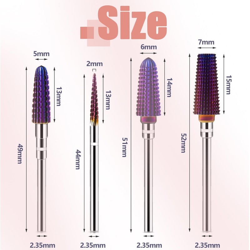 - Professional 5 in 1 Nail Tools: Including 2 Pcs Fine Grit nail drill bits and 2 Pcs Medium Grit nail drill bits, different tooth designs to meet different requests; Shank size: 3/32".