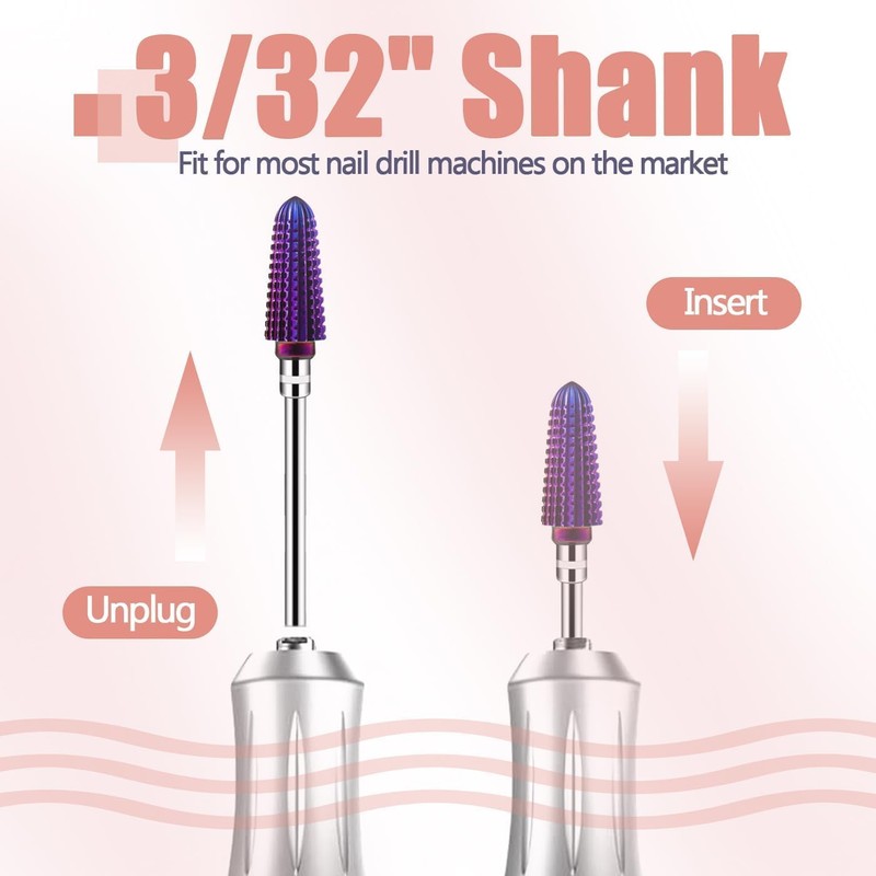 - Universal Handle: 3/32-Inch (2.35mm) shank compatible with most nail drill machines on the market. Just install the shank of nail drill bits into the nail machines and lock tightly.