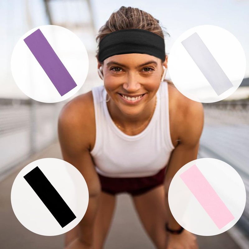 - 【Great Value Four-Piece Set】You will receive 4PCS sweat headbands in different colors, measuring 7.87x1.97 inches/20x5 cm, suitable for daily sports or long-term use. Machine washable, durable, and great for sharing with family and friends.
