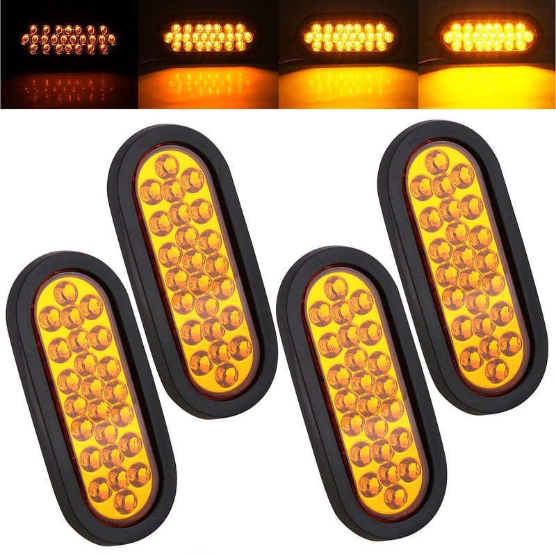 4Pcs 6" Inch Oval Amber LED Strobe Lights 24 LED Recessed Mount with Flash Patterns for Truck Towing Oval Led Trailer Turn Signal Lights Lamps, Rubber Grommets and 3-prong Wire Pigtails Included