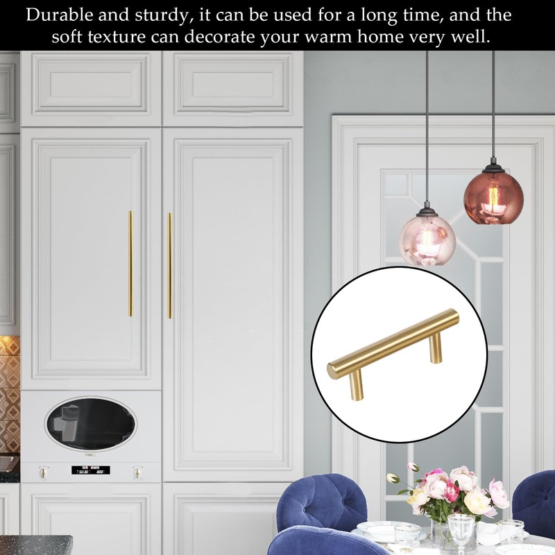 - Material: 4 gold kitchen handles is made of high-quality stainless steel. Not easy to fade, durable and can be used for a long time. Its soft texture can decorate your warm home.