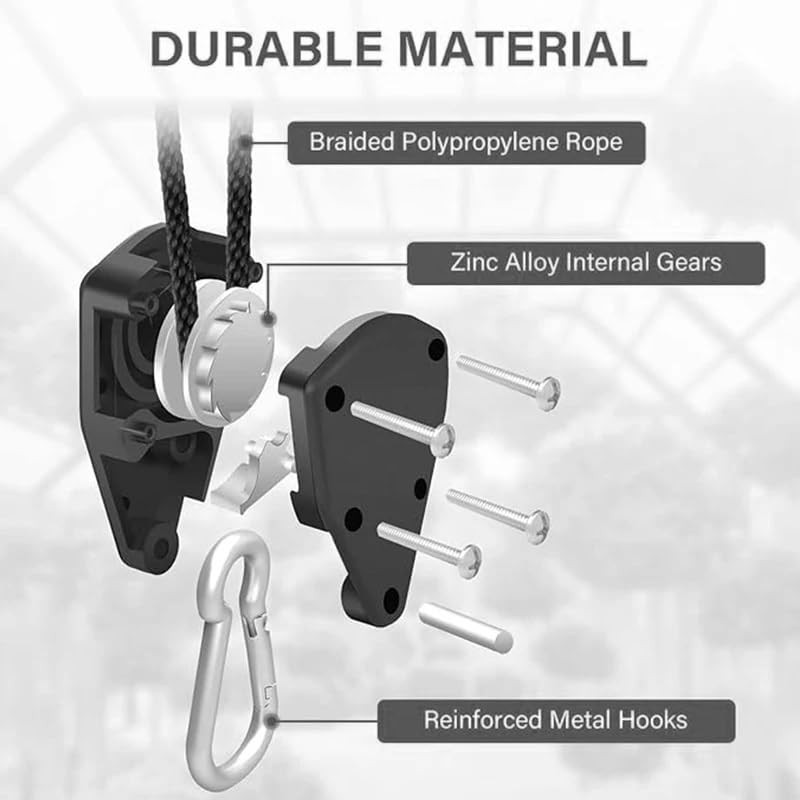 • Easy to Adjust - Use the lever recessed in the hanger to adjust the length of the rope easily. Lower or raise the grow light based on the plant's height for better planting