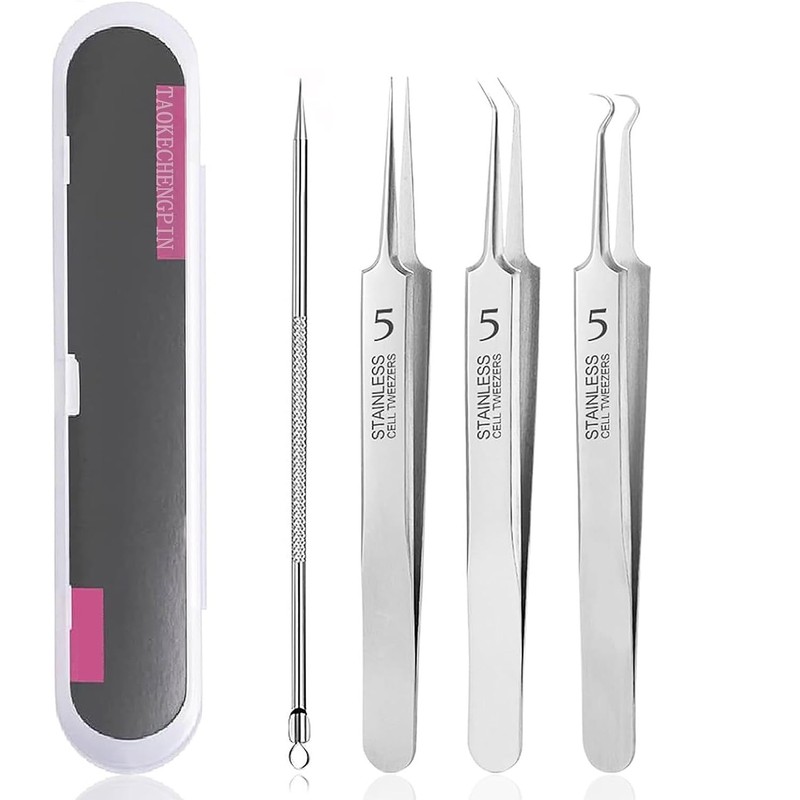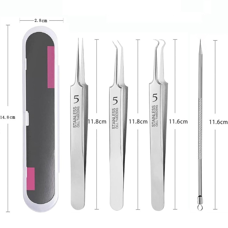 4pcs Blackhead Remover Tweezers Pimple Popper Tool Kit, Extractor Acne Removal Kit Pimple Popper Tool, Clip for Whiteheads, Acne Clip, Ingrown Hairs Tweezers, Blackheads Remover Extractor, Stainless S