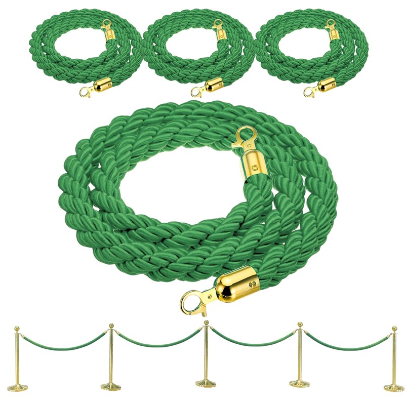 4PCS Braided Green Rope 5FT – String Twisted Barrier Cord with Gold Hooks VIP Rope Crowd Control Stanchion for Event Décor